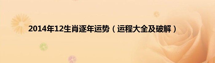 本文2014年12生肖逐年运势,运程大全及破解到此分享完毕,希望对大家有所帮助。