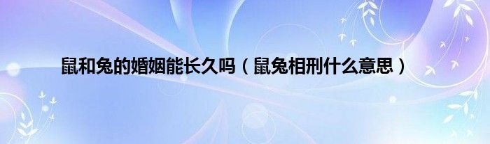 大家好,综合小编来为大家讲解下。鼠和兔的婚姻能长久吗,鼠兔相刑什么意思这个很多人还不知道,现在让我们一起来看看吧!