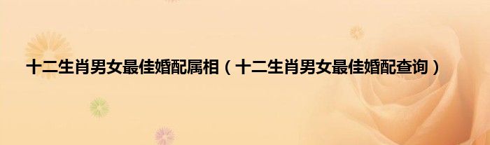 大家好,综合小编来为大家讲解下。十二生肖男女最佳婚配属相,十二生肖男女最佳婚配查询这个很多人还不知道,现在让我们一起来看看吧!