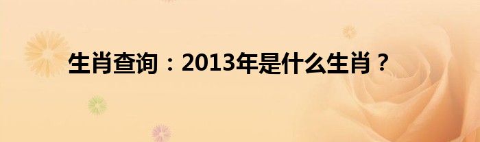 本文生肖查询:2013年是什么生肖?到此分享完毕,希望对大家有所帮助。