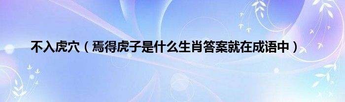 大家好,综合小编来为大家讲解下。不入虎穴,焉得虎子是什么生肖答案就在成语中这个很多人还不知道,现在让我们一起来看看吧!