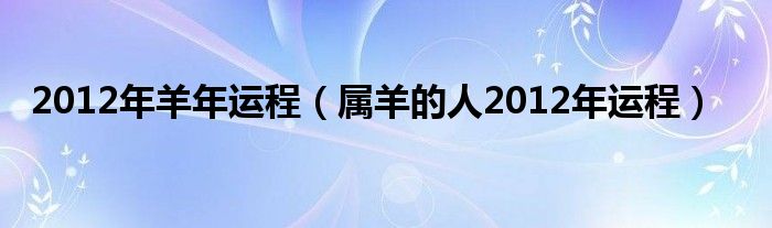 大家好,综合小编来为大家讲解下。2012年羊年运程,属羊的人2012年运程这个很多人还不知道,现在让我们一起来看看吧!