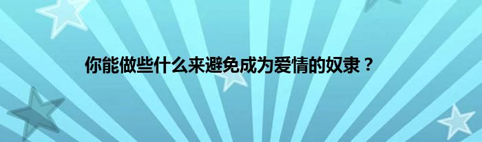 大家好,综合小编来为大家讲解下。你能做些什么来避免成为爱情的奴隶?这个很多人还不知道,现在让我们一起来看看吧!
