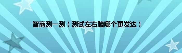 大家好,综合小编来为大家讲解下。智商测一测,测试左右脑哪个更发达这个很多人还不知道,现在让我们一起来看看吧!