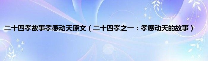 本文二十四孝故事孝感动天原文,二十四孝之一:孝感动天的故事到此分享完毕,希望对大家有所帮助。