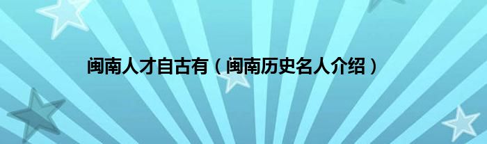 大家好,综合小编来为大家讲解下。闽南人才自古有,闽南历史名人介绍这个很多人还不知道,现在让我们一起来看看吧!