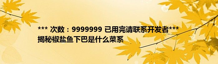 本文*** 次数:9999999 已用完请联系开发者*** 揭秘椒盐鱼下巴是什么菜系到此分享完毕,希望对大家有所帮助。