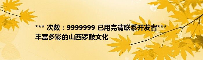 本文*** 次数:9999999 已用完请联系开发者*** 丰富多彩的山西锣鼓文化到此分享完毕,希望对大家有所帮助。