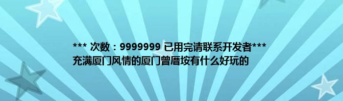 本文*** 次数:9999999 已用完请联系开发者*** 充满厦门风情的厦门曾厝垵有什么好玩的到此分享完毕,希望对大家有所帮助。