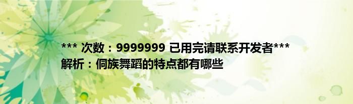 本文*** 次数:9999999 已用完请联系开发者*** 解析:侗族舞蹈的特点都有哪些到此分享完毕,希望对大家有所帮助。