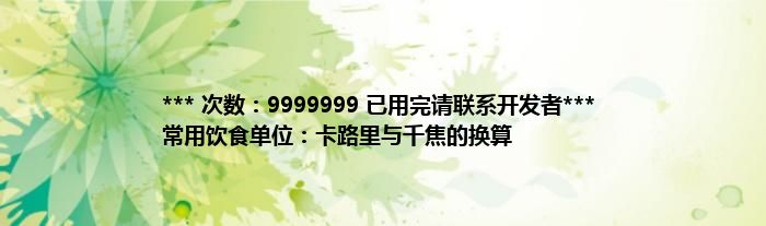 大家好,综合小编来为大家讲解下。*** 次数:9999999 已用完请联系开发者*** 常用饮食单位:卡路里与千焦的换算这个很多人还不知道,现在让我们一起来看看吧!