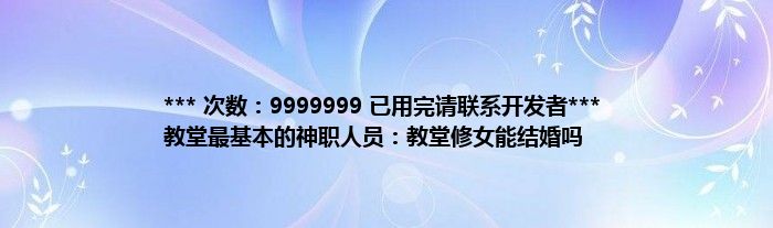 大家好,综合小编来为大家讲解下。*** 次数:9999999 已用完请联系开发者*** 教堂最基本的神职人员:教堂修女能结婚吗这个很多人还不知道,现在让我们一起来看看吧!