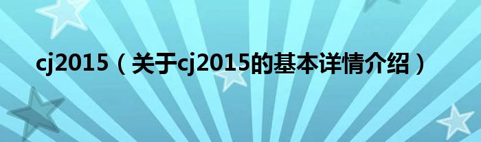 本文关于cj2015的基本详情介绍就讲解完毕,希望对大家有所帮助。