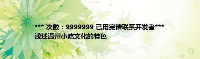 大家好,综合小编来为大家讲解下。*** 次数:9999999 已用完请联系开发者*** 浅述温州小吃文化的特色这个很多人还不知道,现在让我们一起来看看吧!