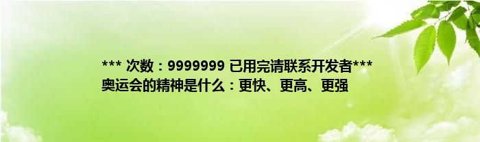 大家好,综合小编来为大家讲解下。*** 次数:9999999 已用完请联系开发者*** 奥运会的精神是什么:更快、更高、更强这个很多人还不知道,现在让我们一起来看看吧!