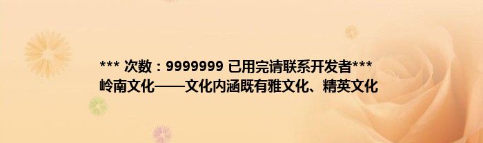 大家好,综合小编来为大家讲解下。*** 次数:9999999 已用完请联系开发者*** 岭南文化——文化内涵既有雅文化、精英文化这个很多人还不知道,现在让我们一起来看看吧!