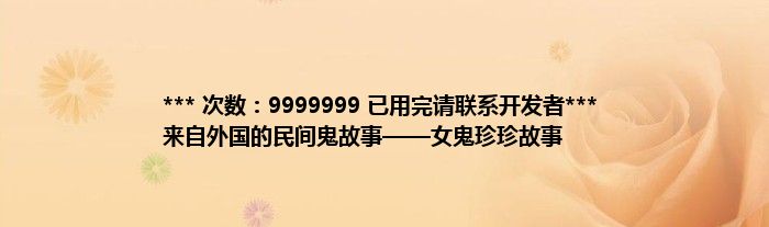 大家好,综合小编来为大家讲解下。*** 次数:9999999 已用完请联系开发者*** 来自外国的民间鬼故事——女鬼珍珍故事这个很多人还不知道,现在让我们一起来看看吧!