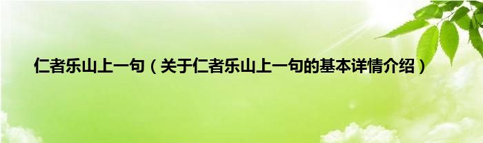 本文关于仁者乐山上一句的基本详情介绍就讲解完毕,希望对大家有所帮助。
