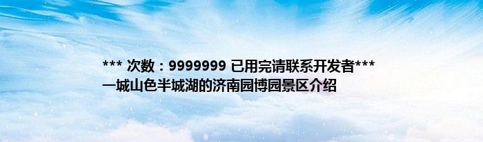 本文*** 次数:9999999 已用完请联系开发者*** 一城山色半城湖的济南园博园景区介绍到此分享完毕,希望对大家有所帮助。