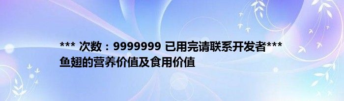 本文*** 次数:9999999 已用完请联系开发者*** 鱼翅的营养价值及食用价值到此分享完毕,希望对大家有所帮助。