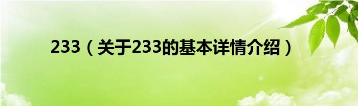 本文关于233的基本详情介绍就讲解完毕,希望对大家有所帮助。