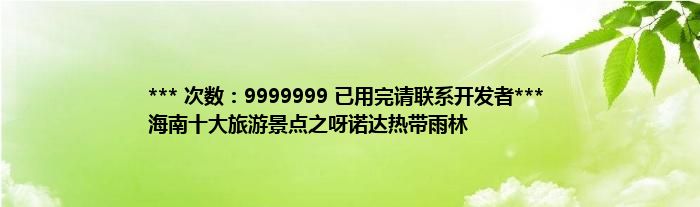 本文*** 次数:9999999 已用完请联系开发者*** 海南十大旅游景点之呀诺达热带雨林到此分享完毕,希望对大家有所帮助。
