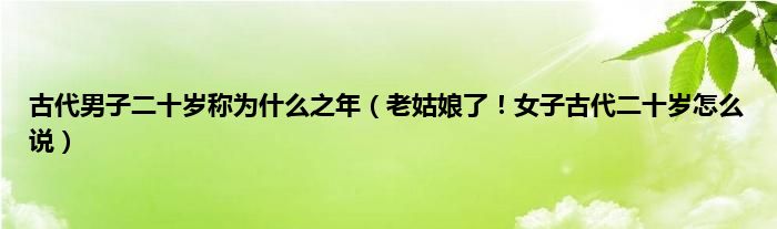 大家好,综合小编来为大家讲解下。古代男子二十岁称为什么之年,老姑娘了!女子古代二十岁怎么说这个很多人还不知道,现在让我们一起来看看吧!