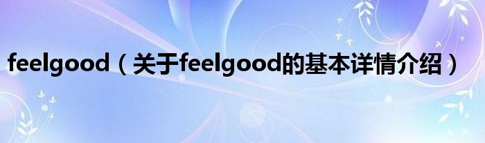 本文关于feelgood的基本详情介绍就讲解完毕,希望对大家有所帮助。