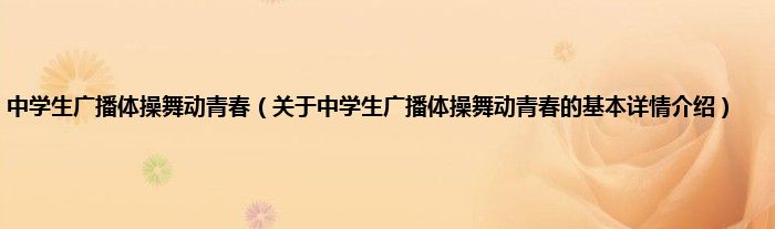 本文关于中学生广播体操舞动青春的基本详情介绍就讲解完毕,希望对大家有所帮助。