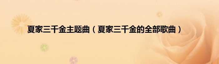 欢迎观看本篇文章,小升来为大家解答以上问题。夏家三千金主题曲,夏家三千金的全部歌曲很多人还不知道,现在让我们一起来看看吧!
