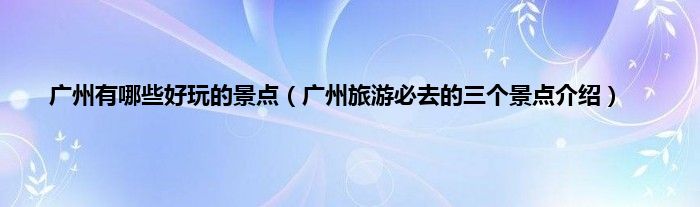 欢迎观看本篇文章,小升来为大家解答以上问题。广州有哪些好玩的景点,广州旅游必去的三个景点介绍很多人还不知道,现在让我们一起来看看吧!