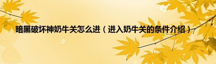 欢迎观看本篇文章,小升来为大家解答以上问题。暗黑破坏神奶牛关怎么进,进入奶牛关的条件介绍很多人还不知道,现在让我们一起来看看吧!