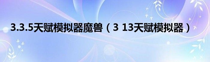 大家好,小问来为大家解答以上问题。3.3.5天赋模拟器魔兽,3 13天赋模拟器这个很多人还不知道,现在让我们一起来看看吧!
