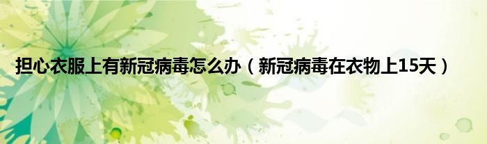 大家好,综合小编来为大家讲解下担心衣服上有新冠病毒怎么办,新冠病毒在衣物上15天这个很多人还不知道,现在让我们一起来看看吧!