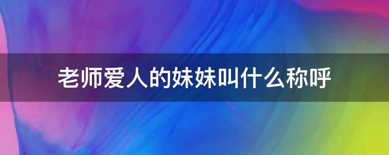 老师爱人的妹妹可以称呼为阿姨、姨。教师,以教育为生的职业。这个职业是人类社会最古老的职业之一。按照法律法规和行业规范,在规定的时间节点内,根据学校设施条件和个人职称专业,安排学生入座、发放学习资料、备课授课、批改作业、引导辅导帮助学生学习、组织听课练习、组织考试、传授科学文化基本知识、开展主持学术交流、提高学生的观察学习、记忆认知、动手沟通、操作等综合实践能力,培养学生特长,促进德、智、体、美、劳全面发展,掌握经验技术。