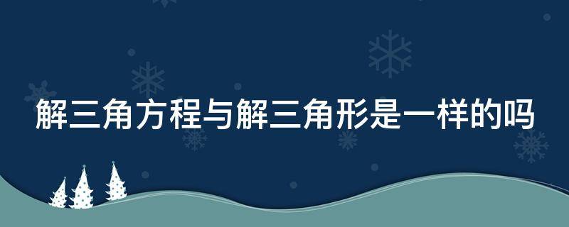 解三角方程与解三角形不是一样的。解三角形是已知三角形中三个量至少含有一边,求其他三个元素;而解三角方程就是确定三角方程是否有解,如果有解,求出三角方程的解集;基本思路是把它化成一个或几个最简单的三角方程,然后就这些最简单的三角方程写出它的通解。适合于方程的一个未知数的实数值(可以理解为角的弧度数)叫三角方程的一个解;适合于方程的未知数的实数值的集合叫做三角方程的通解。把简单的三角方程转化为最简单的三角方程,其中要应用到三角函数性质及图像、反三角函数、诱导公式等知识。