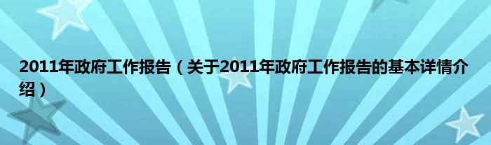 本文关于2011年政府工作报告的基本详情介绍就讲解完毕,希望对大家有所帮助。