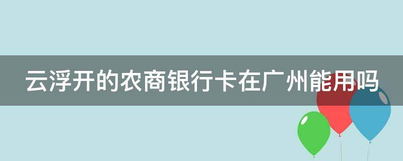 云浮开的农商银行卡在广州能用,但是跨省会收取手续费,具体收取标准以不同银行规定为准。银行是依法成立的经营货币信贷业务的金融机构,是商品货币经济发展到一定阶段的产物。银行是金融机构之一,银行按类型分为:中央银行、政策性银行、商业银行、专营机构、投资银行、世界银行,它们的职责各不相同。中央银行:即中国人民银行是我国的中央银行。国有政策性银行:包括中国进出口银行、中国农业发展银行、国家开发银行。国有商业银行:包括中国工商银行、中国农业银行、中国银行、中国建设银行、中国邮政储蓄银行、交通银行等。