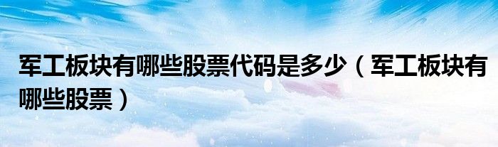关于军工板块有哪些股票代码是多少,军工板块有哪些股票这个很多人还不知道,今天菲菲来为大家解答以上的问题,现在让我们一起来看看吧!