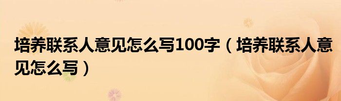 关于培养联系人意见怎么写100字,培养联系人意见怎么写这个很多人还不知道,今天菲菲来为大家解答以上的问题,现在让我们一起来看看吧!