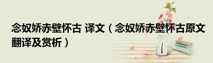 一、《念奴娇·赤壁怀古》译文及注释