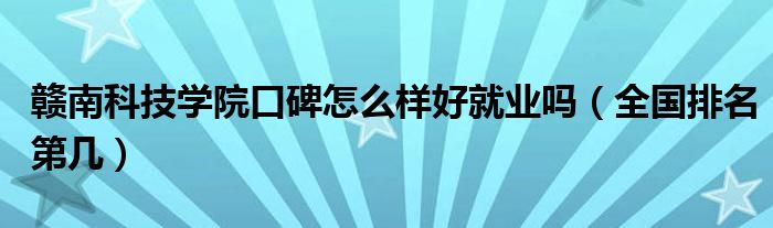 大家好,乐儿来为大家解答以下问题,赣南科技学院口碑怎么样好就业吗,全国排名第几很多人还不知道,现在让我们一起来看看吧!