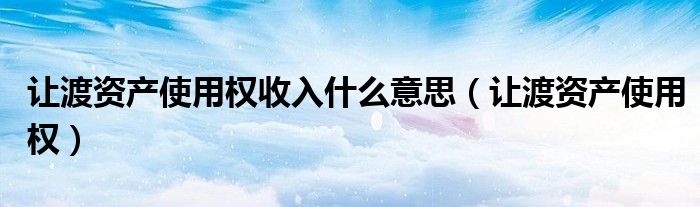 关于让渡资产使用权收入什么意思,让渡资产使用权这个很多人还不知道,今天菲菲来为大家解答以上的问题,现在让我们一起来看看吧!