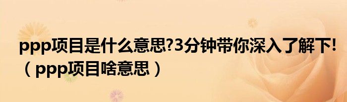 关于ppp项目是什么意思?3分钟带你深入了解下!,ppp项目啥意思这个很多人还不知道,今天菲菲来为大家解答以上的问题,现在让我们一起来看看吧!
