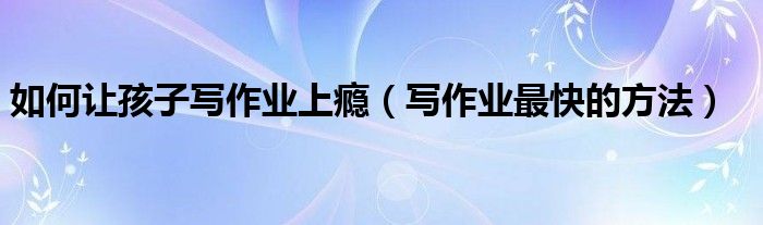关于如何让孩子写作业上瘾,写作业最快的方法这个很多人还不知道,今天菲菲来为大家解答以上的问题,现在让我们一起来看看吧!