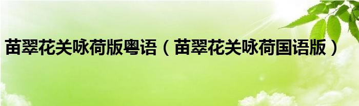 关于苗翠花关咏荷版粤语,苗翠花关咏荷国语版这个很多人还不知道,今天菲菲来为大家解答以上的问题,现在让我们一起来看看吧!