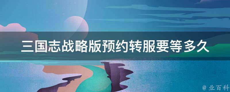 三国志战略版预约转服要等1-3个工作日。预约转服一般需要一定的时间来完成,具体时间因转服人数和游戏服务器繁忙程度而异。一般情况下,玩家需要耐心等待1-3个工作日即可完成转服,并且这期间游戏时间和数据将无法正常访问,所以请留意游戏转服通知。