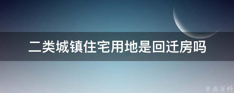 二类城镇住宅用地不是回迁房,而是商品房,产权年限一般是70年。二类居住用地是城市居民住宅用地的一类,涵盖了以多层、中高层及高层单元式居住建筑为主,配套设施齐全、布局完整的用地,在居住用地中占主要地位,是城市中普遍的住宅形式。