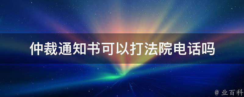 仲裁通知书可以打法院电话,可以打法院的电话来咨询有关仲裁通知书的事宜。法院的电话号码可以在法院的官方网站上找到,或者通过电话目录或在线搜索来获取。可以向法院工作人员提供有关仲裁通知书的详细信息,并获得相关建议或进一步的指导。