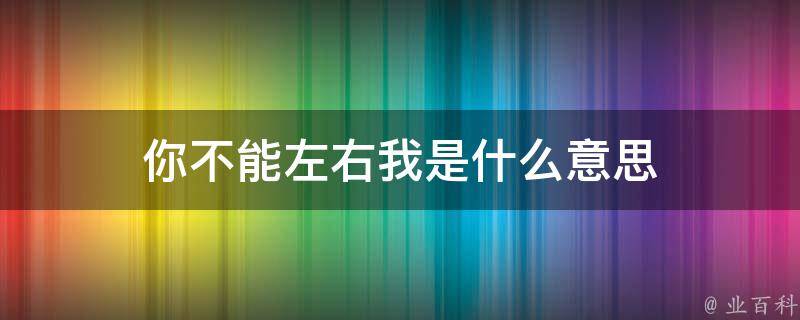 你不能左右我的意思是对方无法对自己施加影响、控制或干涉,表达了一种坚定的立场,以及不受他人操纵或左右的心态。这句话可以用于许多情况,包括对意见、价值观、生活方式或个人选择的自主决策。